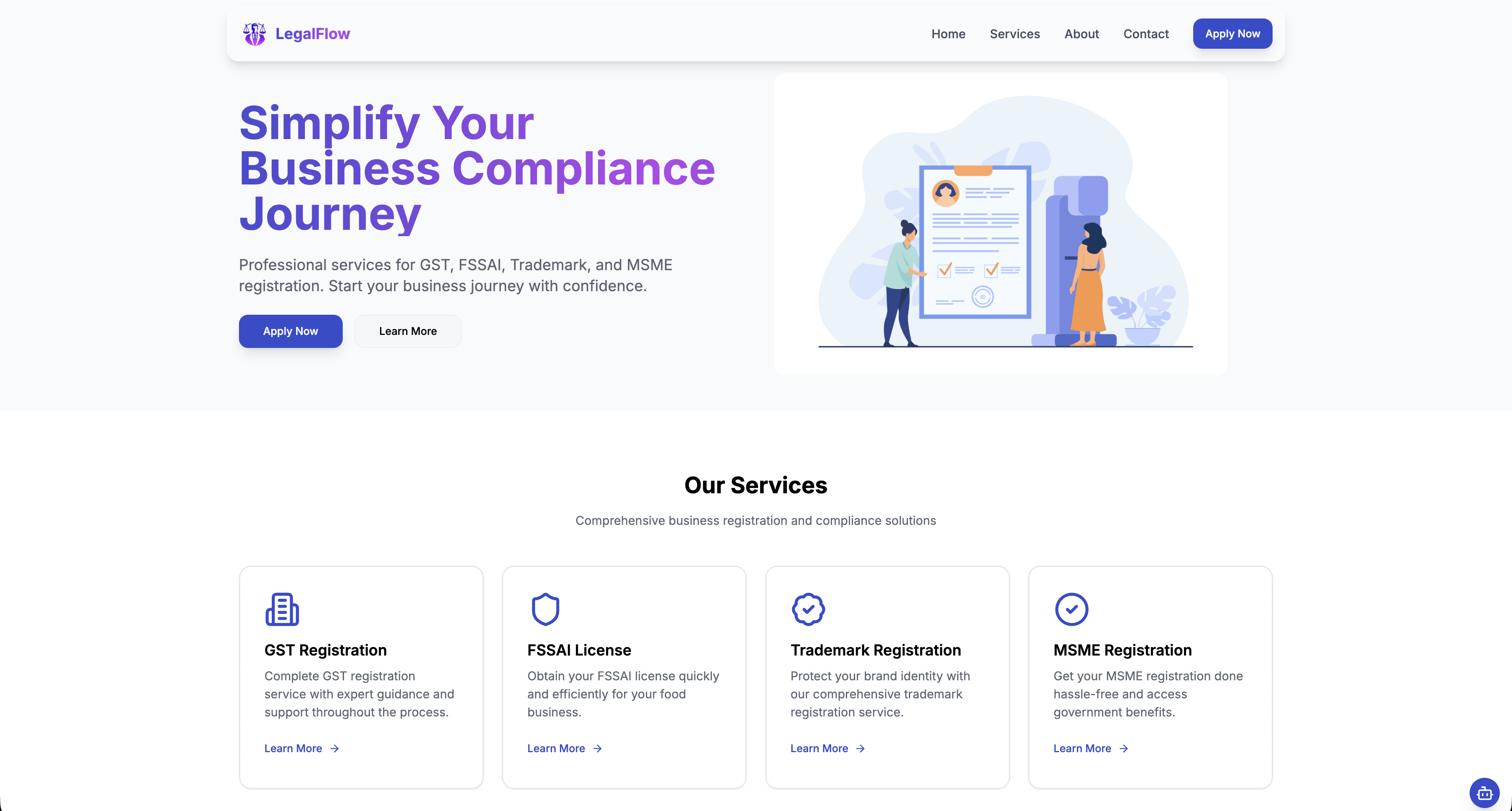 Business registration and compliance platform simplifying GST, FSSAI, trademark, and MSME registration for Indian entrepreneurs with expert guidance.