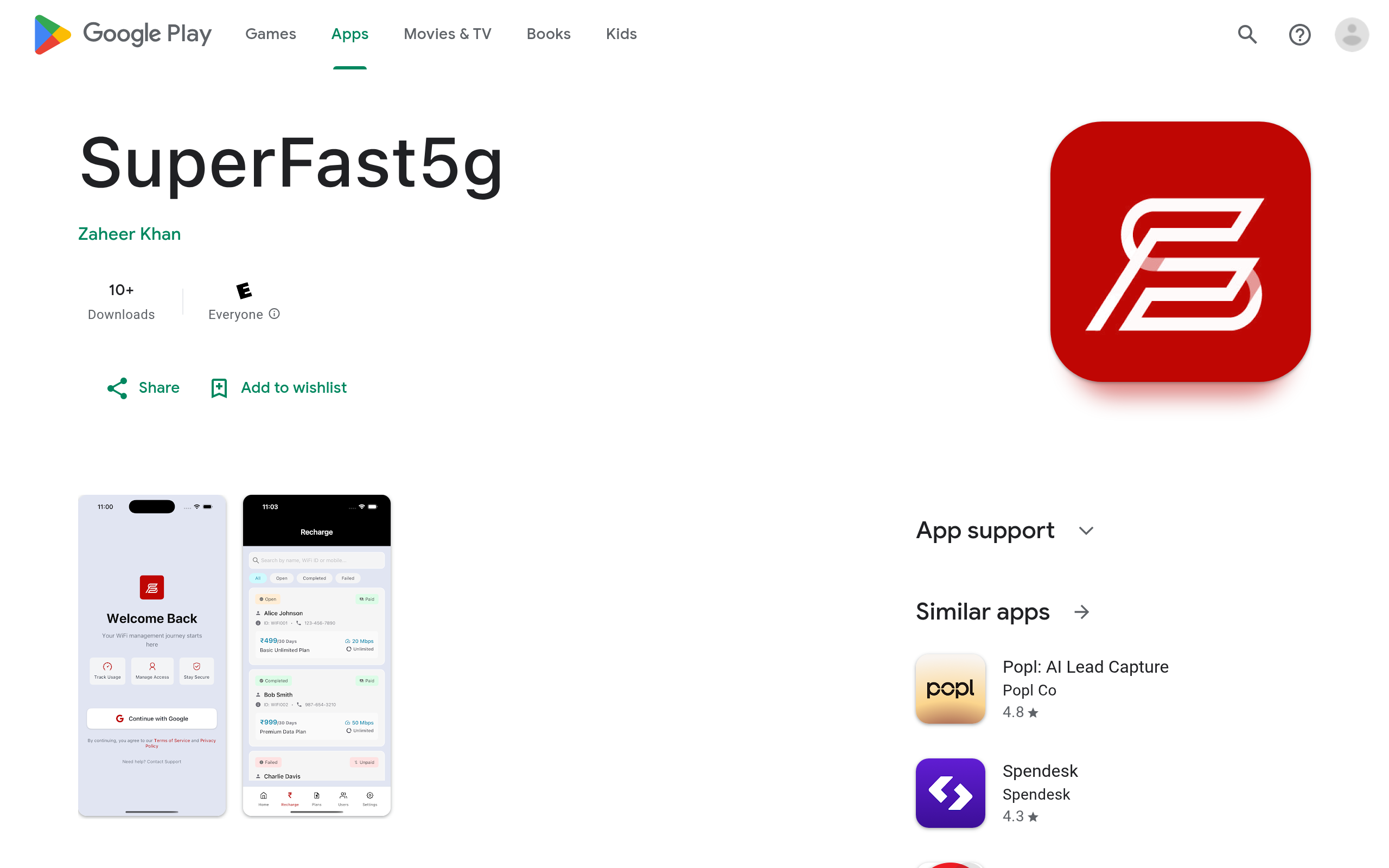 Android app for managing internet plans — users can track usage, recharge instantly, and get expiry alerts, while admins manage users, process recharges, and access analytics in real-time.